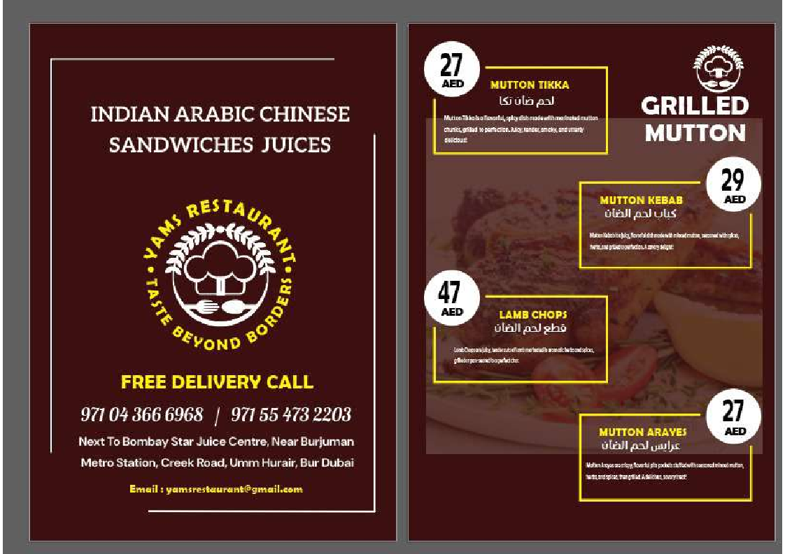 Welcome to YAMS RESTAURANT, a culinary gem nestled in Dubai, offering an eclectic menu that captures the essence of home-cooked meals. Located near Medeor Hospital on Sheikh Khalifa Bin Zayed St, this restaurant is a must-visit for anyone craving authentic flavors.